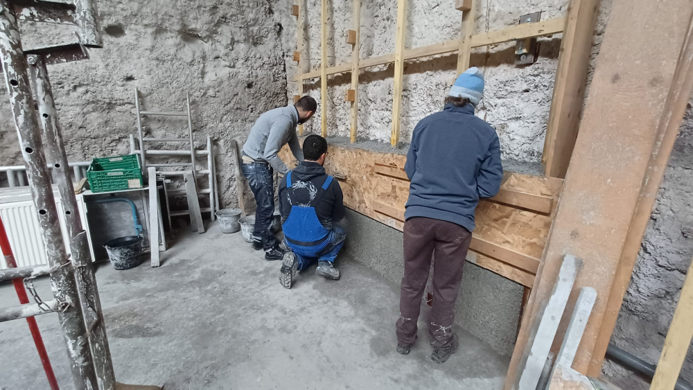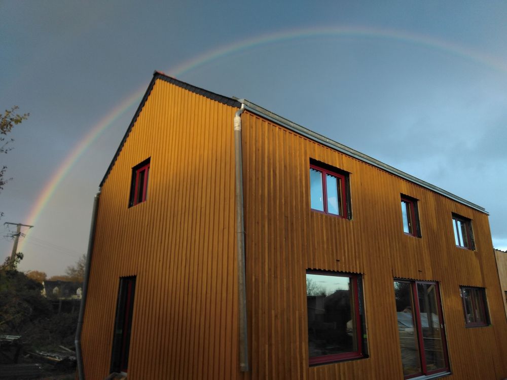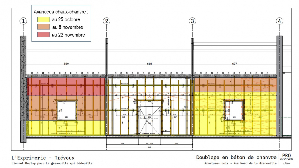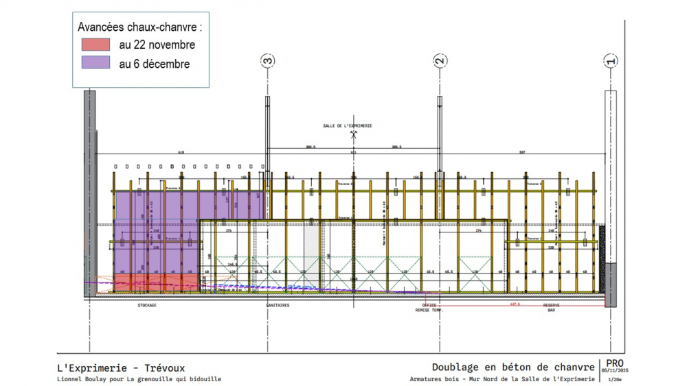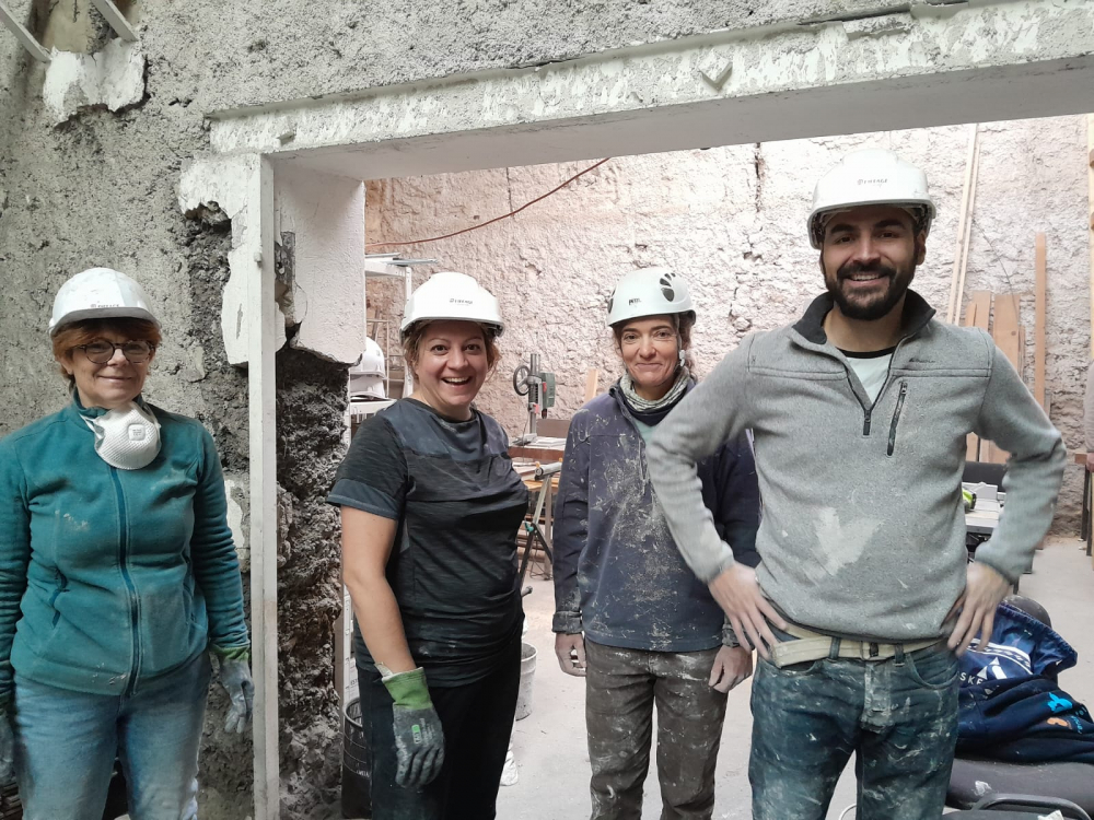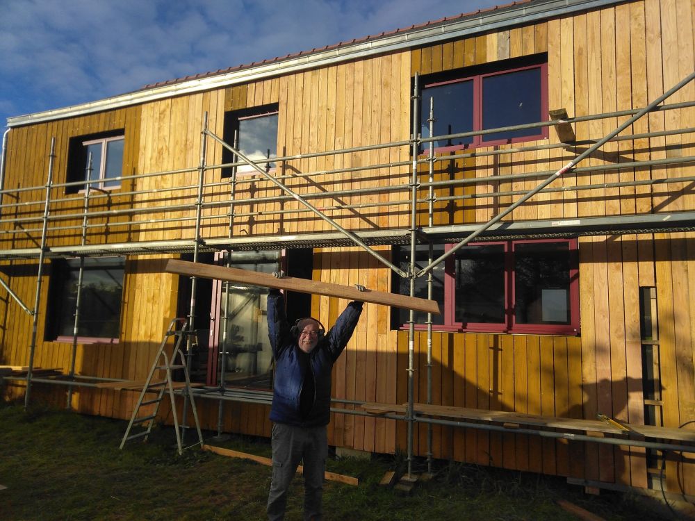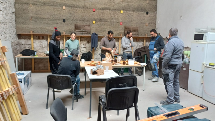 Premier chantier avec la nouvelle verrière! Le grand mur nord a sacrément avancé. Le premier tiers d'isolation au chaux chanvre est presque fini grâce aux participants de ce samedi. L'armature nécessaire pour bancher l'isolation avance aussi pour accueillir les...Afficher la suite Retour chantier du 6 décembre.