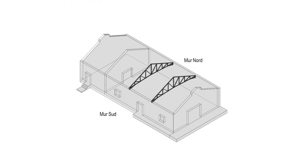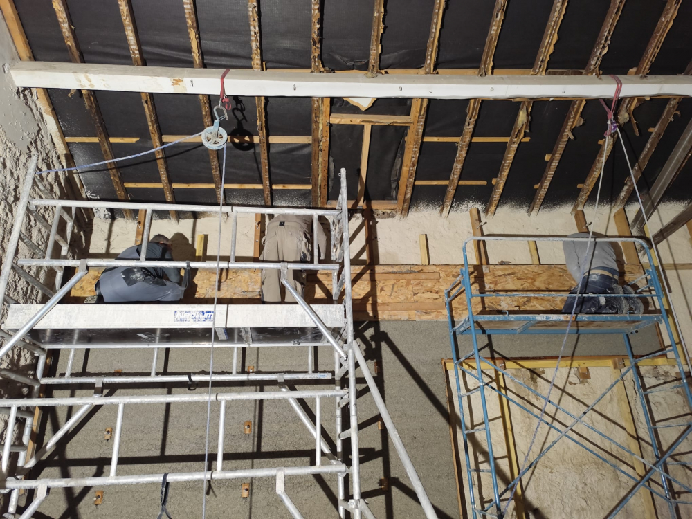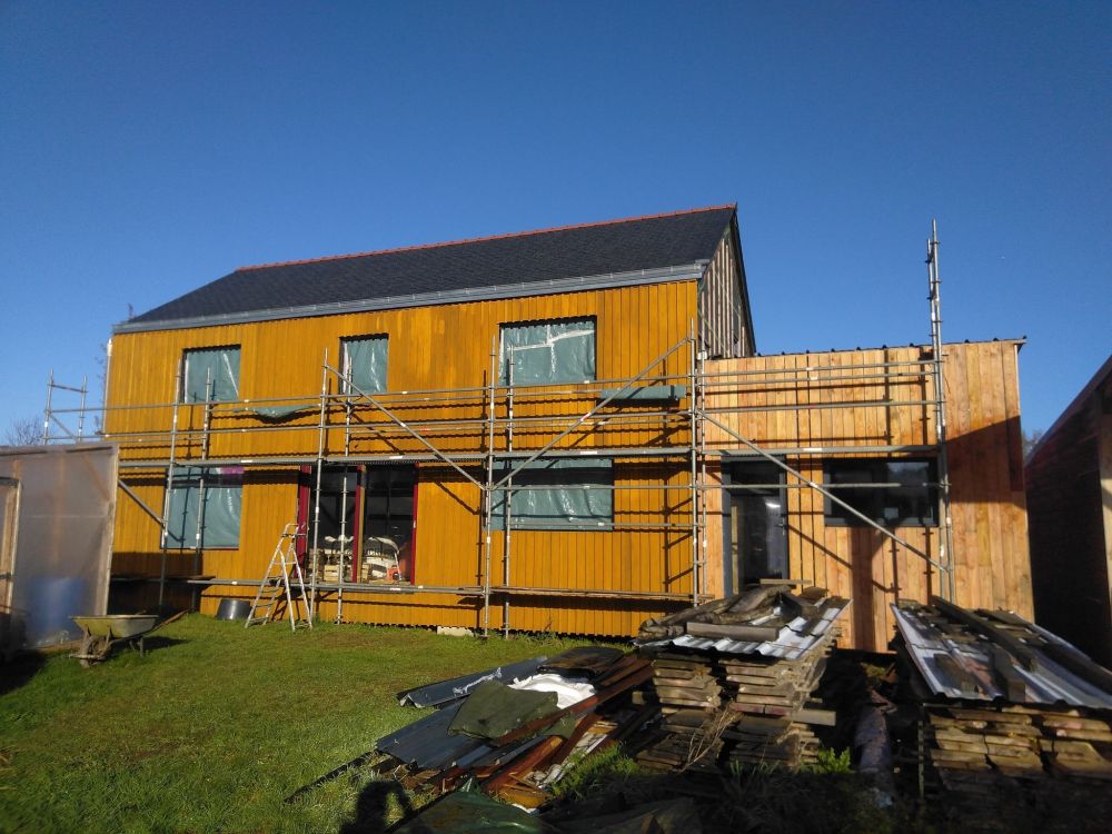 Le mur nord qui a été entièrement repris accueille maintenant son ossature bois.