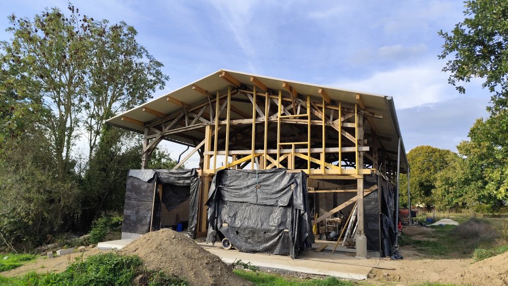 Cette semaine c'est : GASTRO :-( mais on a l'objectif de finir les cloisons bois et faire du torchis si la santé le permets.