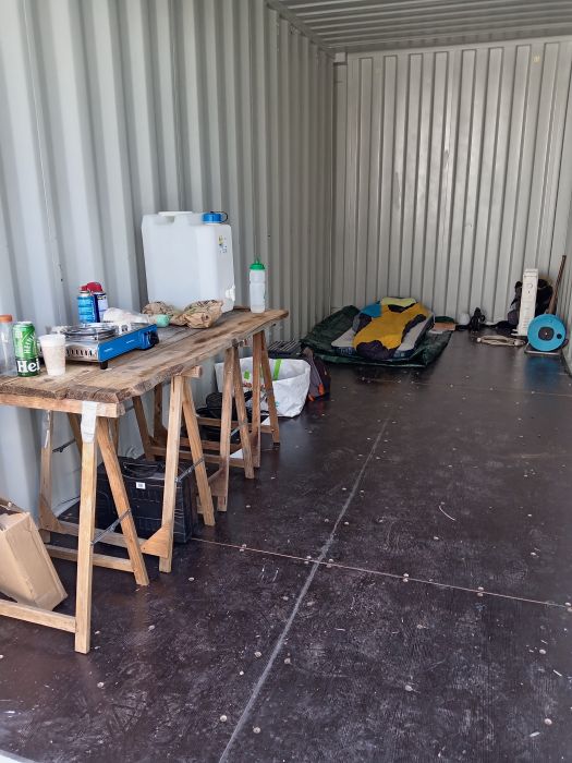 J'ai aussi reçu et placé mes 2 premiers conteneurs maritimes mardi, et le tipi aujourd'hui.