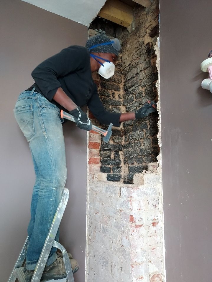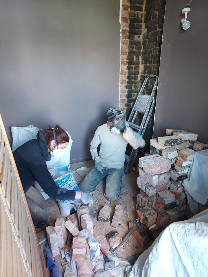 Merci à Aurore pour son aide pour le conduit de cheminée et le nettoyage des briques !