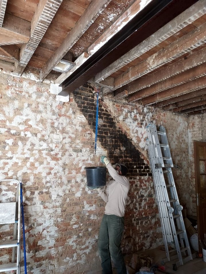- rebouchage des derniers trous des murs et rejointoiement