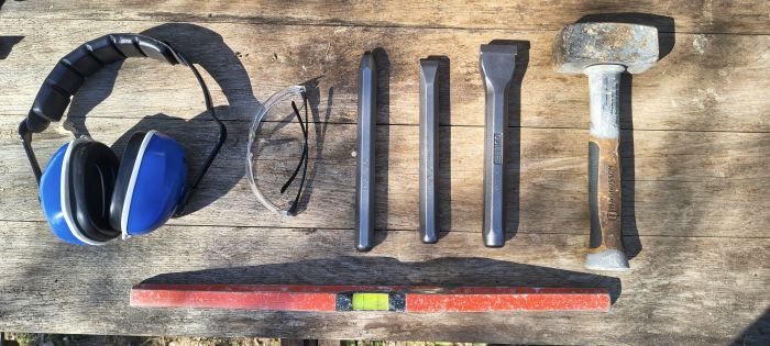 Nous avons reçu les kits pour tailler et maçonner en pierre sèche.