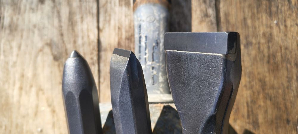 - Le poinçon, ou pointerolle, avec son point d'impact concentré, sert à enlever beaucoup de matière rapidement.