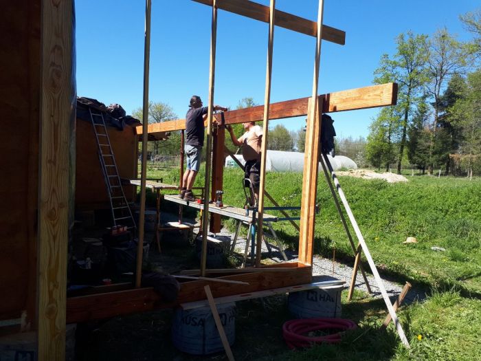Et prochaine étape que l'on est en train de préparer c'est les enduits de corps à l'intérieur, chantier prévu du lundi 15 juin au dimanche 22 juin: bienvenu e s si l'aventure vous tente. Ce sera un période à priori chouette pour vous accueillir (si la météo est bonne), et les framboises et fraises seront de sortie au verger!!