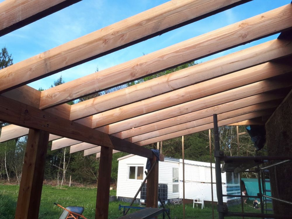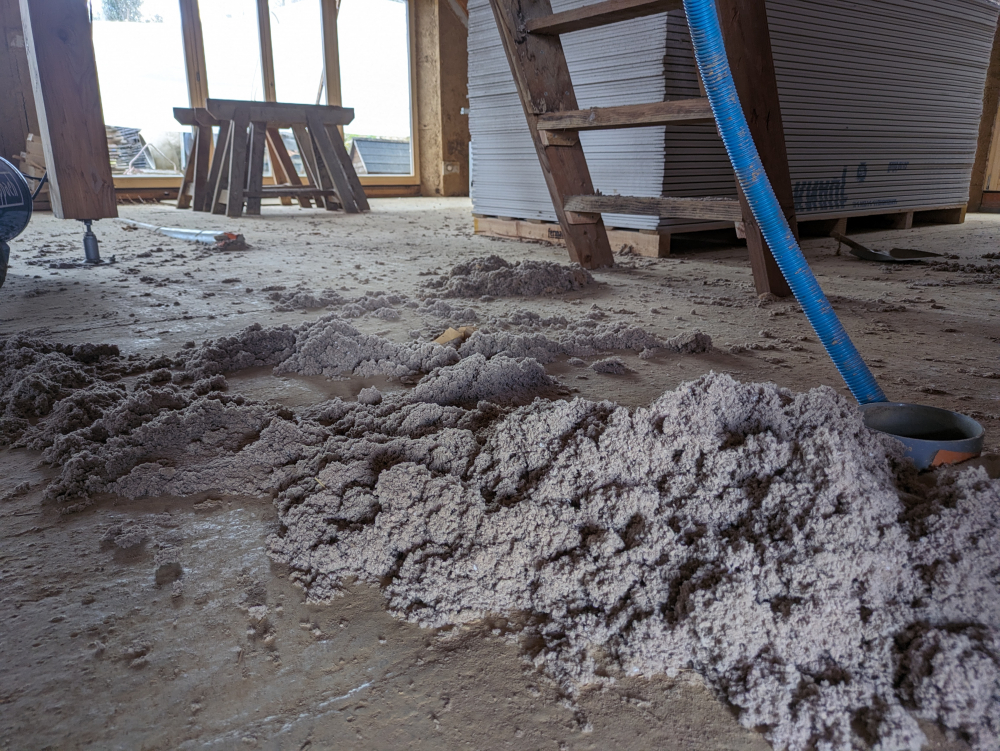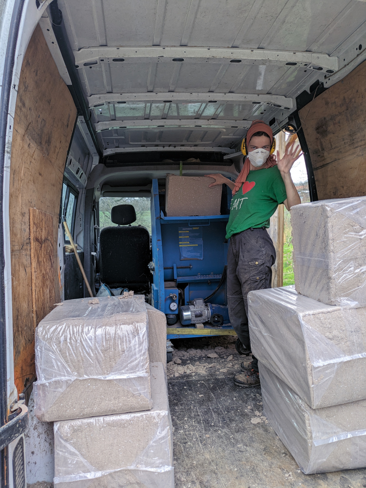 Nous avons également pris une journée pour silonner une partie de la région pour récupérer nos commandes et réservations chez les fournisseurs locaux et vendeurs Leboncoin et revenir "encombrer" les lieux : paille, chènevotte, liège en vrac, brouette, palettes, fibre de chanvre, pièce de bois, ... ont fait leur entrée, annonçant le début des réjouissances !