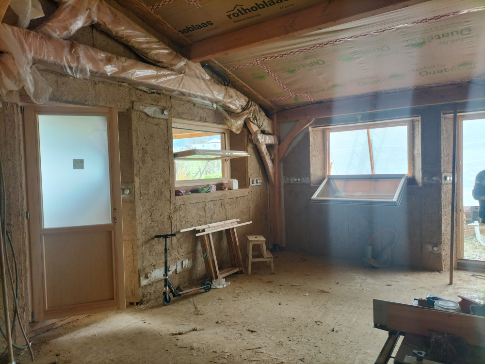 Et bien depuis tous ces mois cela avance doucement mais sûrement! Après 3 semaines de chantier paille en juillet, 3 semaines de chantier torchis en Août, la fermeture des murs à l'étage (pare vapeur, litelage), le sous plancher de l'étage, la pose des menuiseries...Afficher la suite Bonjour à toutes et tous!