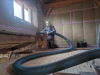 - découpe du liège en bandes pour l'ossature bois