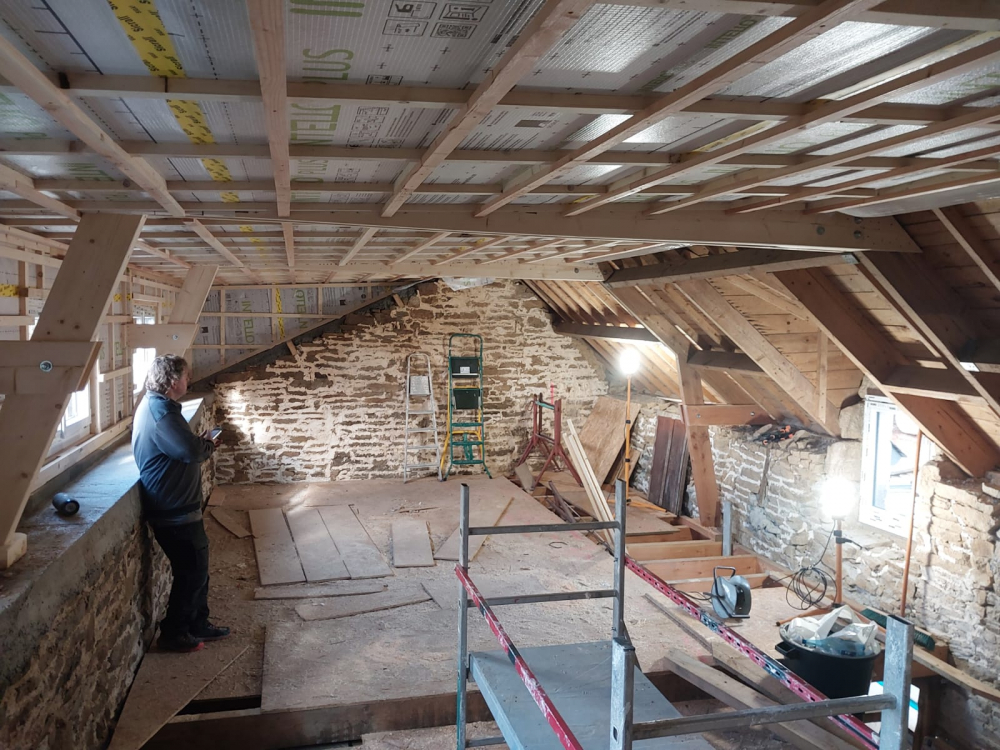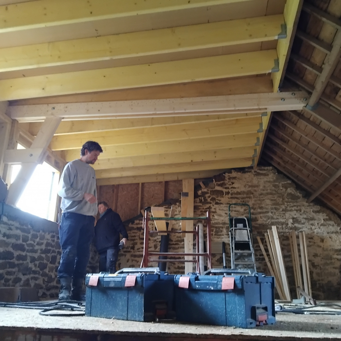 - Ludo — qui a un chantier à lui, une famille, une vie remplie… et pourtant il a offert son dimanche entier pour faire les encastrements et poser les solives. Un cœur immense.