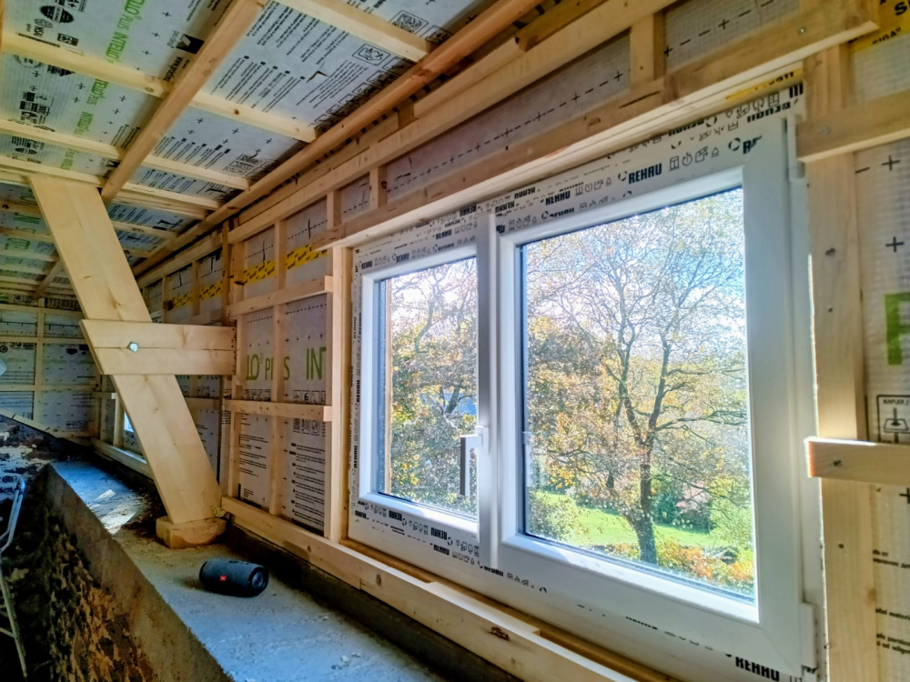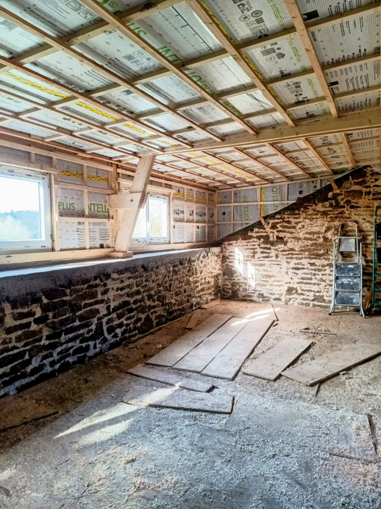 - la peinture minerale et la lasure des poutres de la chambre sont finis