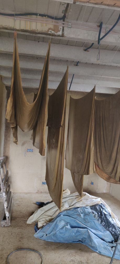 Ça y est une partie des draps barbotinés attendent le séchage !!