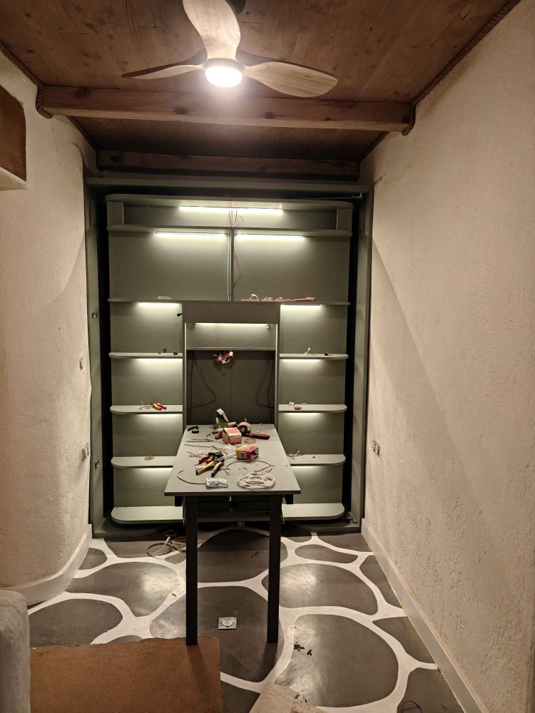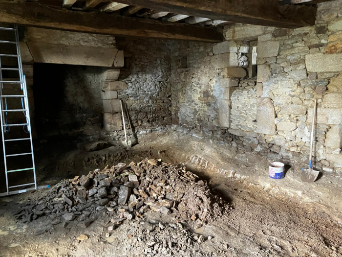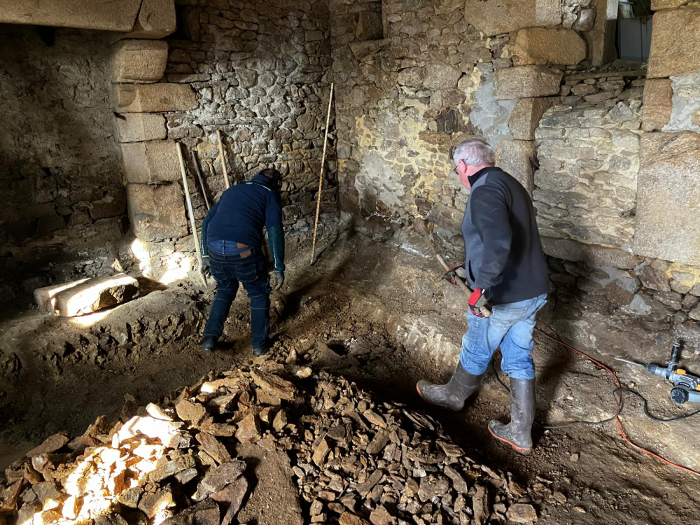 Il nous faut gérer l'humidité dans notre maison construite en pierres seches directement sur terre battue (et à flanc de roche mère). Pour cela, nous sommes en train de faire :