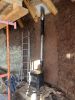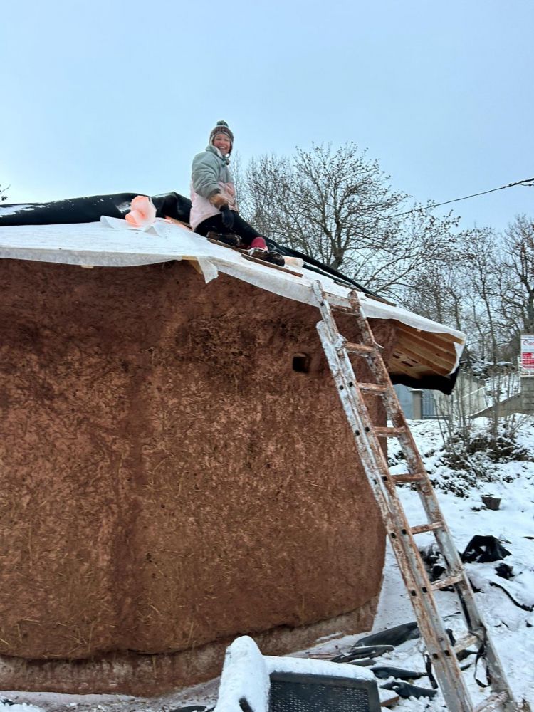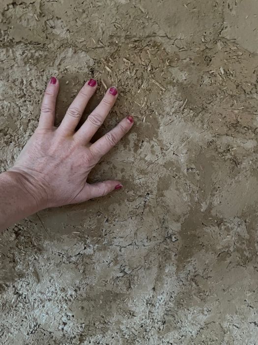 Dimanche 8 mars, chantier participatif pour aplanir un peu la surface du premier enduit terre chanvre.