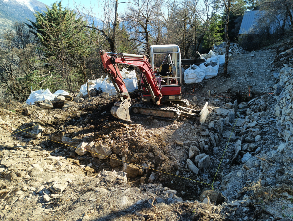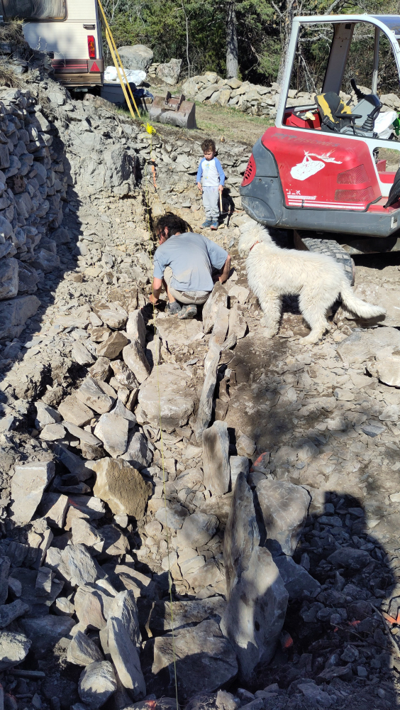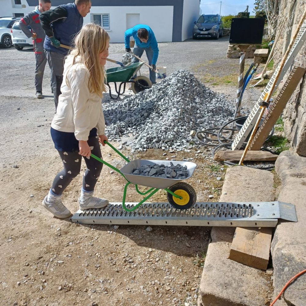 Une bonne chose de faite, au total 17m3 de cailloux à coup de brouettes.