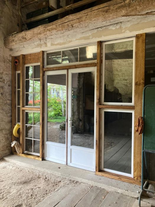 Cette semaine, on termine le ponçage, et le contour des fenêtres pour pouvoir les poser ensuite. On aura aussi la fabrication de fenêtres fixes prévue bientôt.