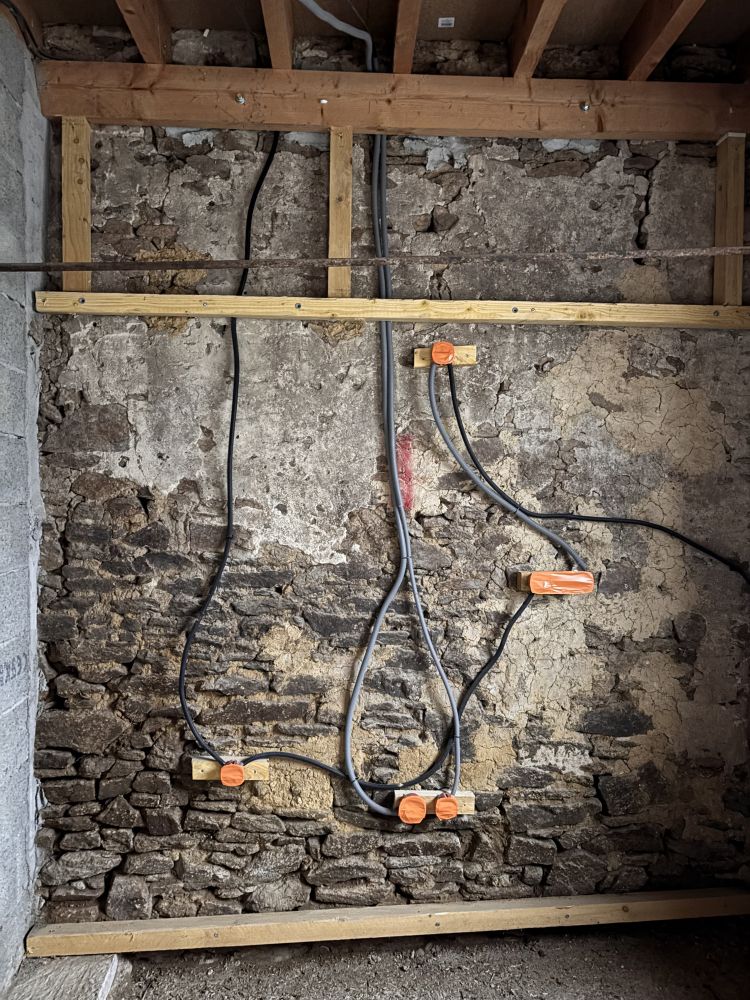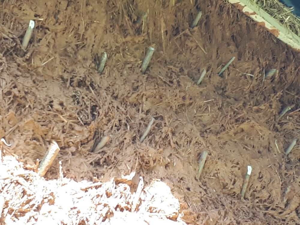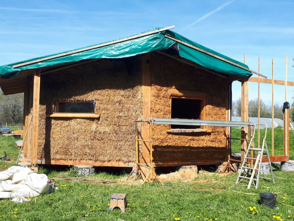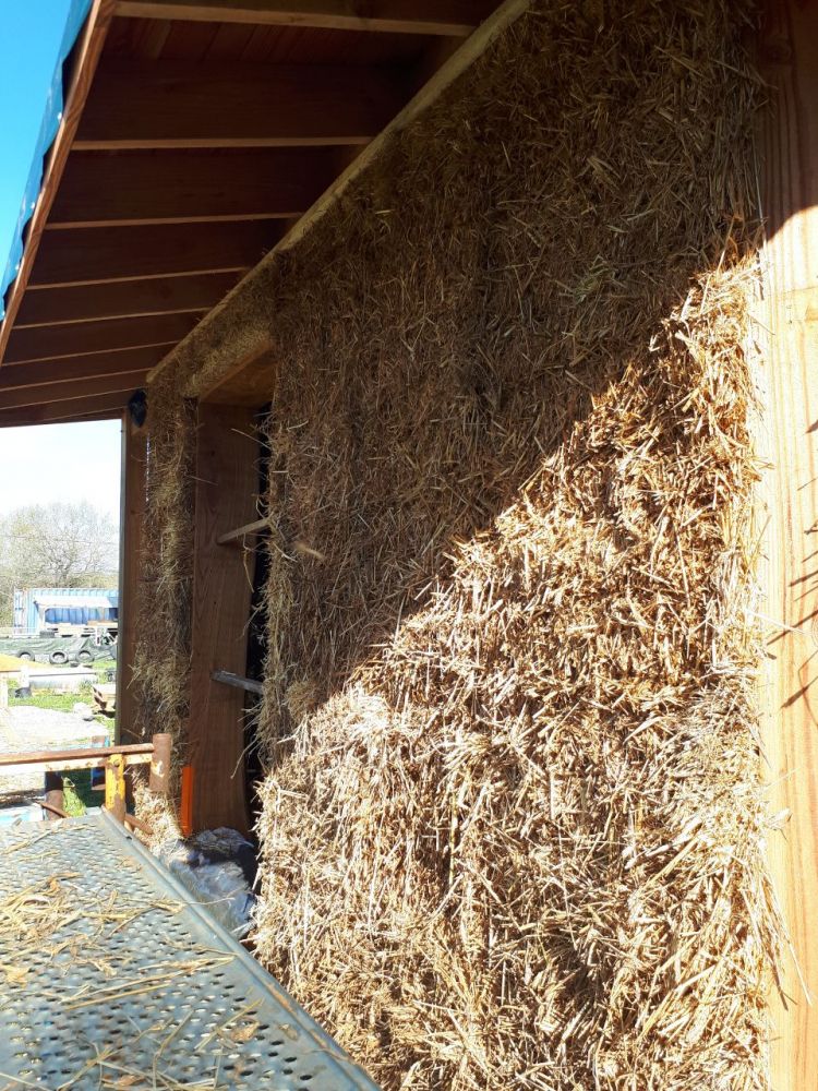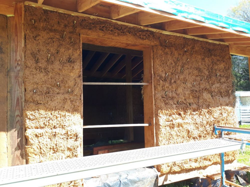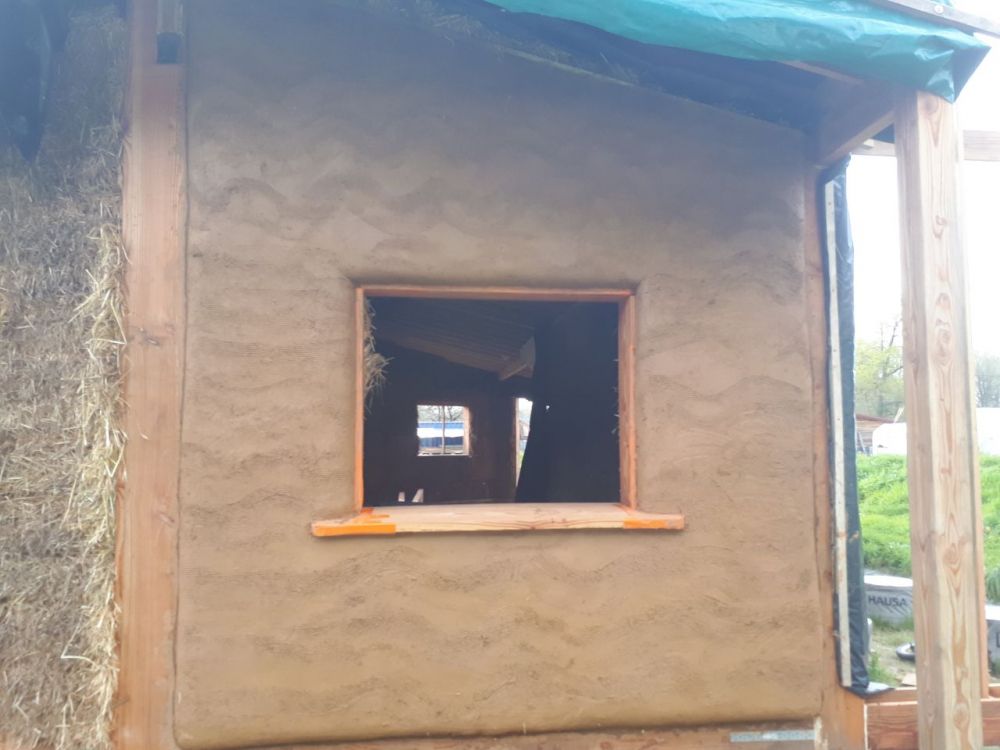 Il ne nous reste plus qu'à reboucher les allèges où passent les ventilations avec la méthode du torchis.