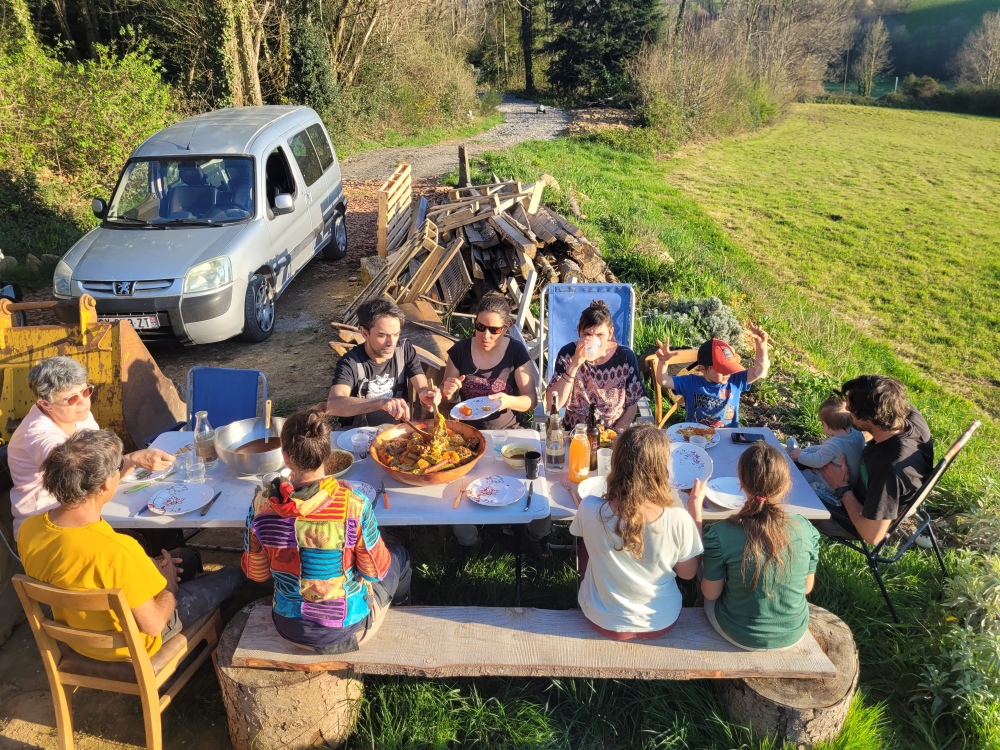 Repas partagé le soir, repas cuisiné au feu de bois le midi.