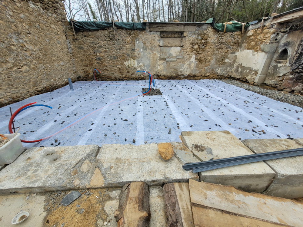 Prochaines étapes: le ferraillage, la pose des gaines électriques et tuyaux d'eau avant de couler la dalle.