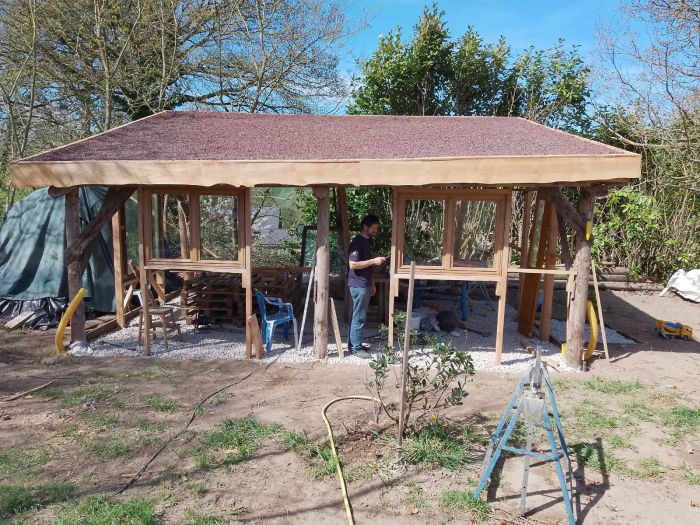 Voici l'atelier en cours de construction, couverture végétalisée ok