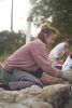Le vernis des fenêtres ne nous plaisant pas trop, Camille s'amuse aussi à décaper et poncer la partie intérieure des dormants des fenêtres pour retrouver la belle couleur du chêne qu'on huilera ensuite.
