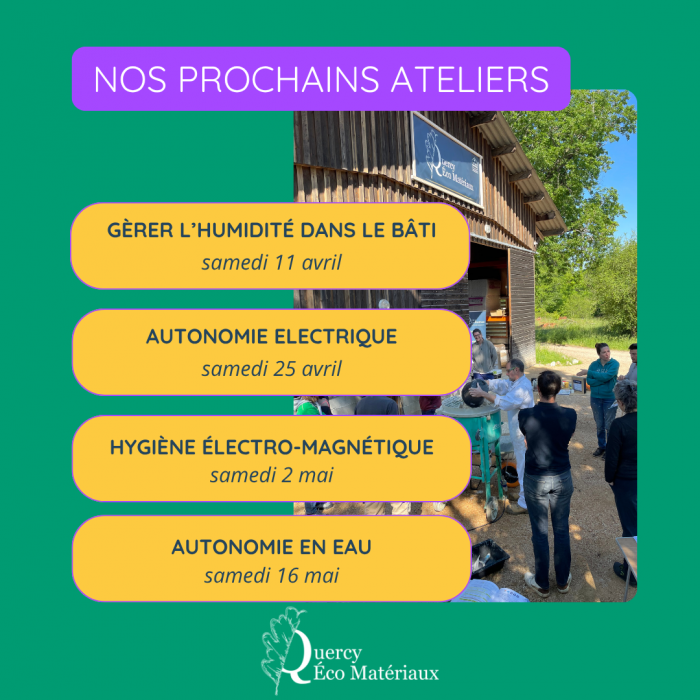 Découvrez les 4 thématiques que nous vous proposons pour les prochaines rencontres autour de l'éco-construction. Ces moments sont l'occasion d'acquérir de nouvelles connaissances, avoir des retours...Afficher la suite [ RENCONTRES PRINTEMPS 2026 ]