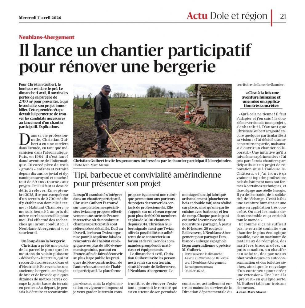 Un article est paru dans le journal Jurassien "Le Progrès" concernant la rénovation de la bergerie. Il date du 1er Avril mais ce n'est pas une blague ;-)