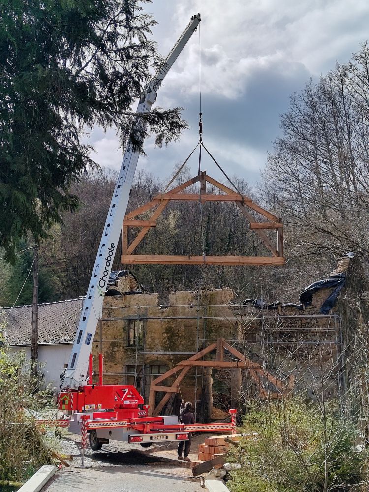 Ca y est on a mis en place les poutres métallique de l'étage (HEA). Ca s'est super bien passé, avec les leves poutres c'était fastoche !!