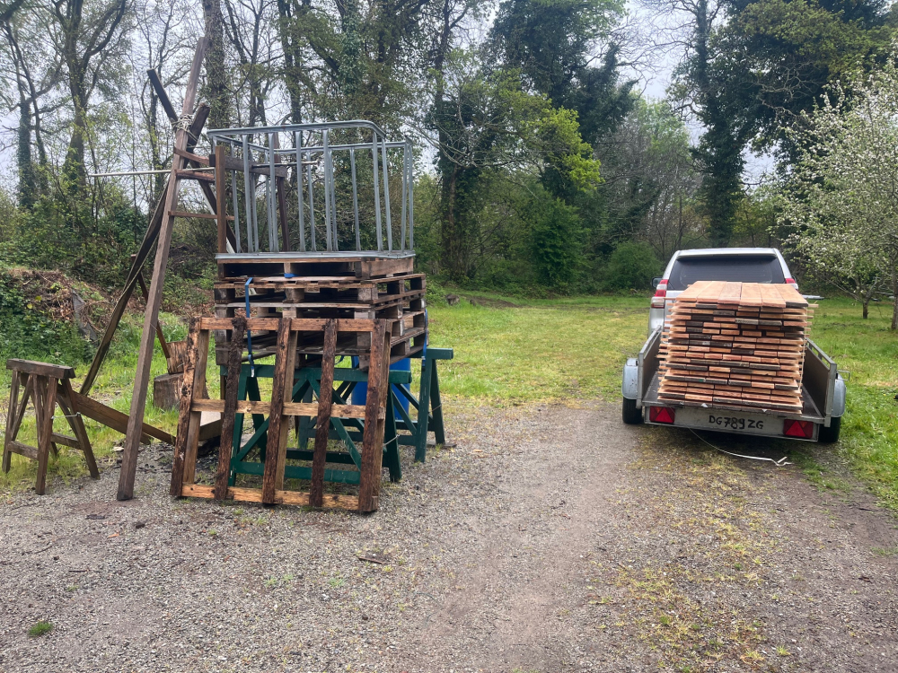 Nous sommes dans les préparatifs du chantier. L’échafaudage arrive vendredi, pour avoir le plaisir de monter. Nous avons fait un essai de piquetage, ça va plus vite que ce qu'on pensait!