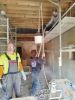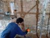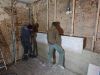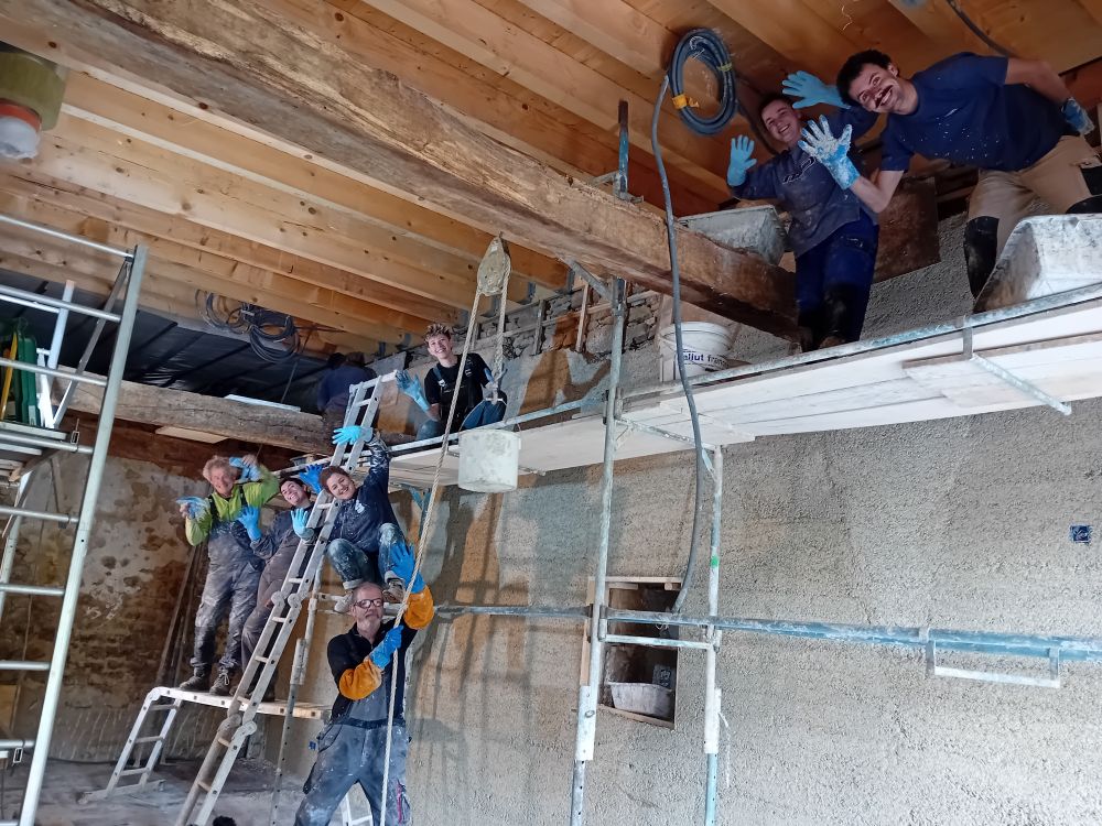 Après 10 jours de chantier accompagné par Olivier – pro chaux chanvre et enduits chaux en Région- et une équipe de 3 à 8 personnes, le mur Est est recouvert de sa correction thermique chaux chanvre (+/- 15 cm), monté en banchage (cf photos). Ne nous reste « plus qu’à » y appliquer un enduit sur sa moitié basse pour consolider sa résistance au frottement…. Le haut, lui, sera laissé en l’état pour réguler l’acoustique de la salle. Mais pour l’instant, laissons sécher 3-4 mois…