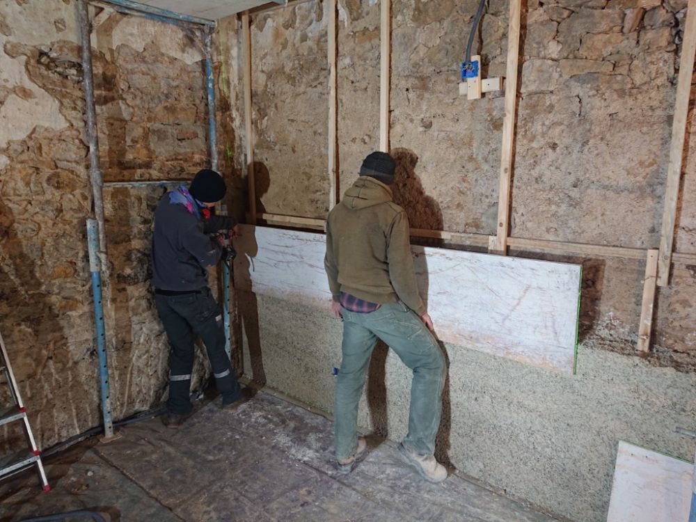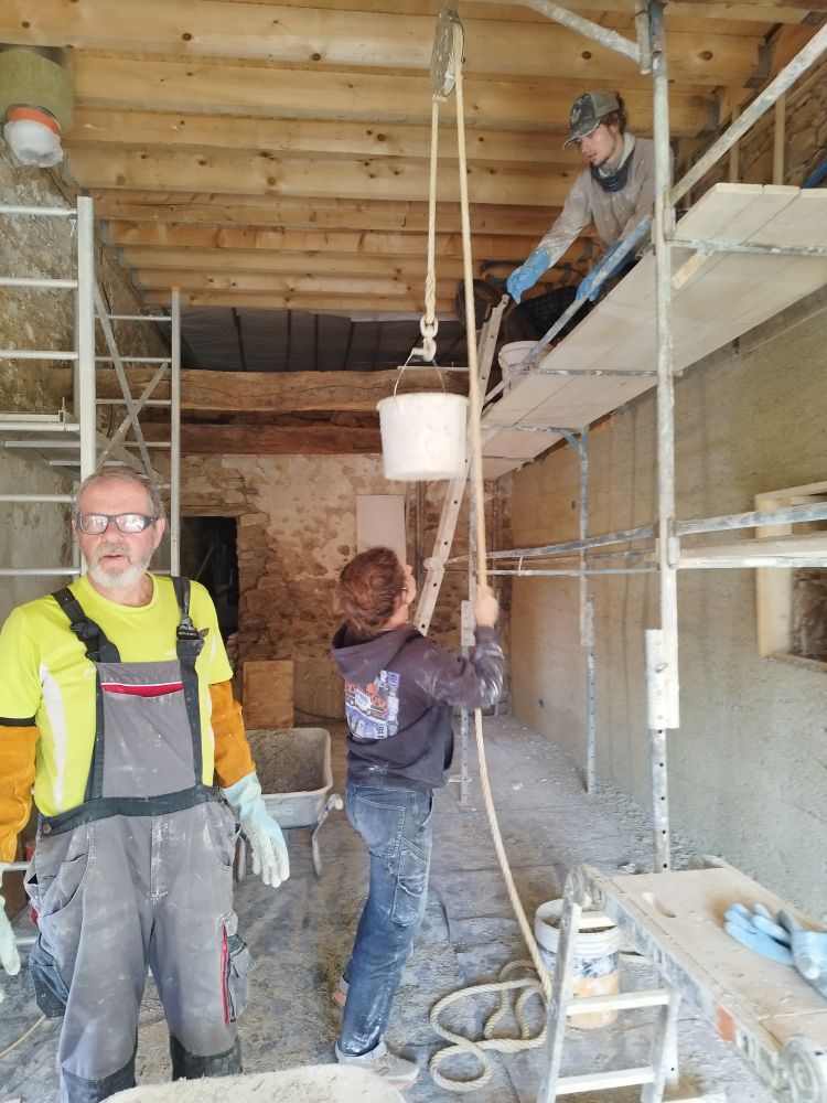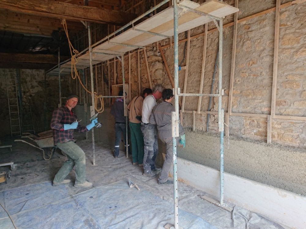 Après 10 jours de chantier accompagné par Olivier – pro chaux chanvre et enduits chaux en Région- et une équipe de 3 à 8 personnes, le mur Est est recouvert de sa correction thermique chaux...Afficher la suite Ça y est ! la grange – future salon « salle de pestacle jeu» de 40 m²- a fait peau neuve !