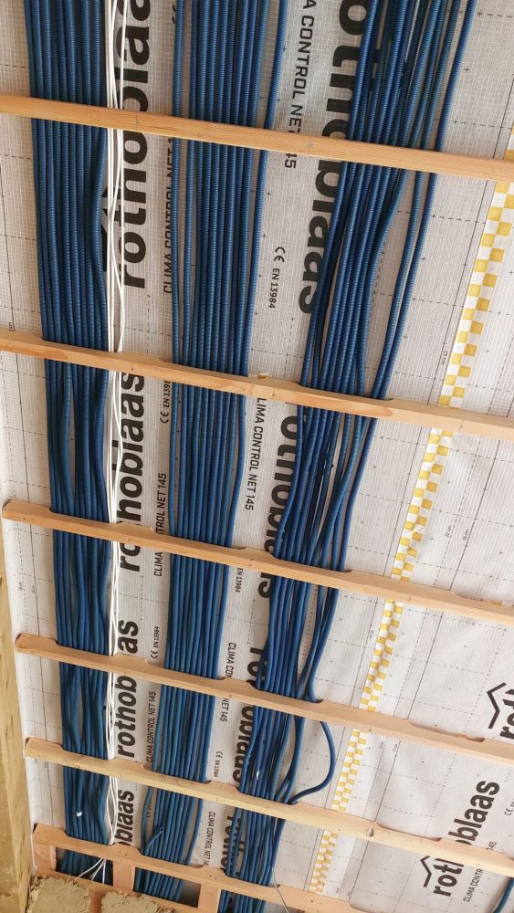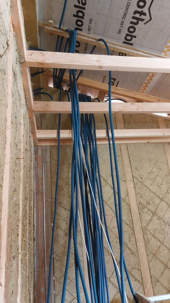 J'ai fais aussi le tour en contreplaqué marine pour pouvoir poser le skydôme, et là j'ai fais des bêtises mais j'ai réussi à plus ou moins rattraper c'est pas ouf mais ça fait le taff, on devait poser le skydome la semaine dernière mais on a préféré profiter un peu des vacances avec les filles, on le pose donc cette semaine. La suite c'est enduit au plafond, pose des sorties en toitures (vmc, ventilation de la lame d'air et hotte de la cuisine) pose des gaines pour l'élec.