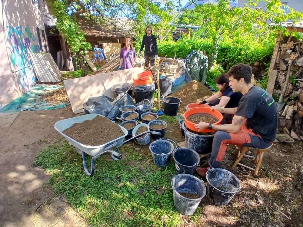 Déjà deux rangs de bottes de paille montés grâce à l'aide précieuse de romi et cristian qui viennent de Mendoza en Argentine. Un grand merci à eux pour leur aide précieuse et la super semaine qu'on a passée ensemble.