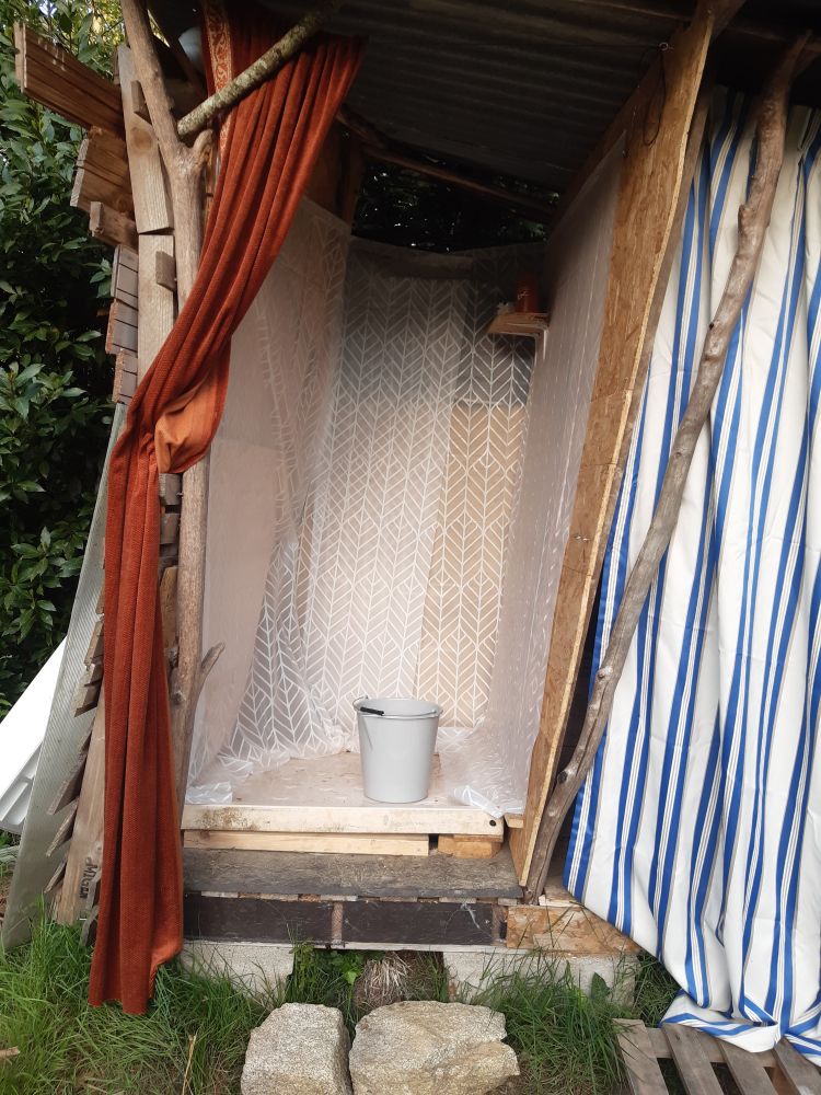 J'expérimente une technique de construction en paille inspirée des paillourtes. Les bottes de paille sont posées sur champ, liées au rang précédent avec de la barbotine et compressées entre elles avec des ficelles.
