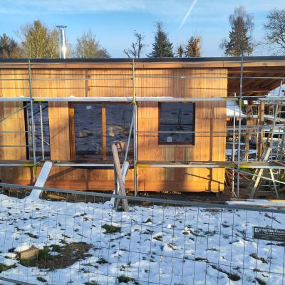 - Préparation de la façade et la fixation (Les week-ends du 3.10, 10.10, 17.10, 24.10 et 31.10 sont prévus pour cela). La façade conservera sa teinte naturelle et ne sera pas brûlée comme prévu initialement.