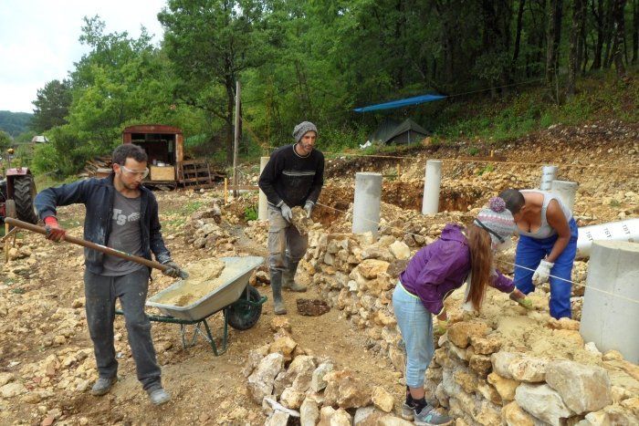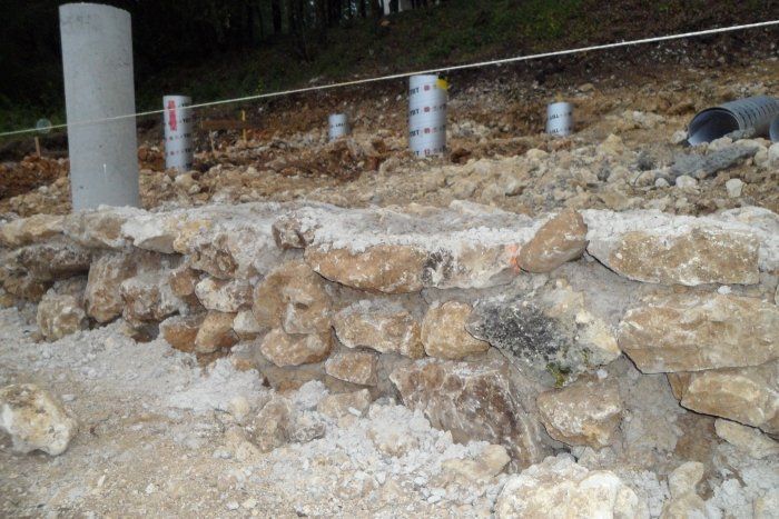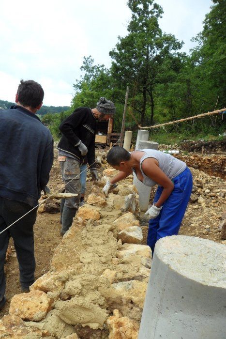 * Première étape : les fondations en moellon (ou pierre et mortier chaux)