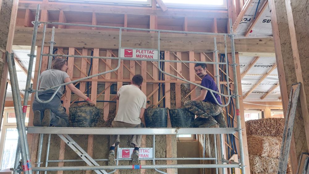 Avril à Octobre 2025 : remplissage mur GREB (Paille + mortier + Elec)