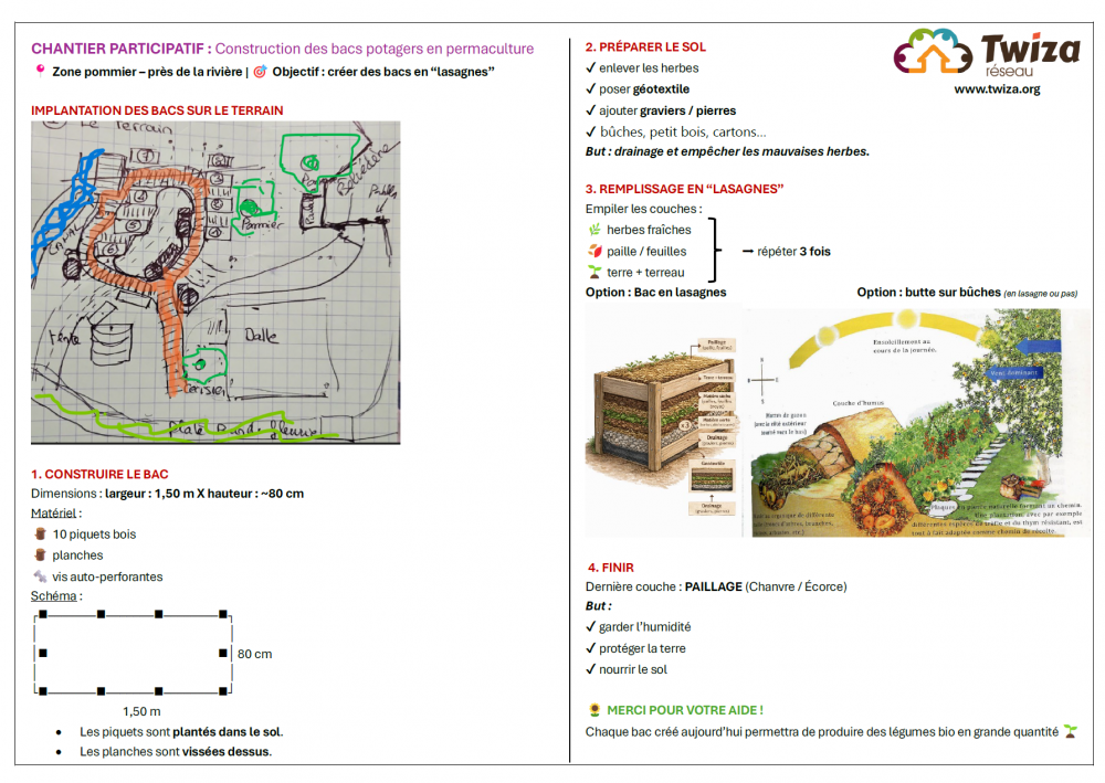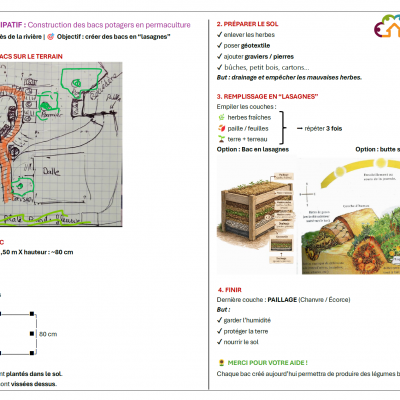 Le chantier est organisé dans un esprit non productiviste : pas de course contre la montre, pas d’exigence de performance. Les tâches seront expliquées, adaptées aux capacités de chacun et réalisées dans le respect des personnes, des rythmes et des règles de sécurité.