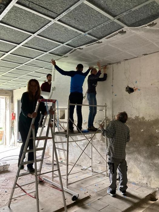 - isolation du plafond et des lieux de stockage, installation des cloisons coupe-feu et des portes de secours