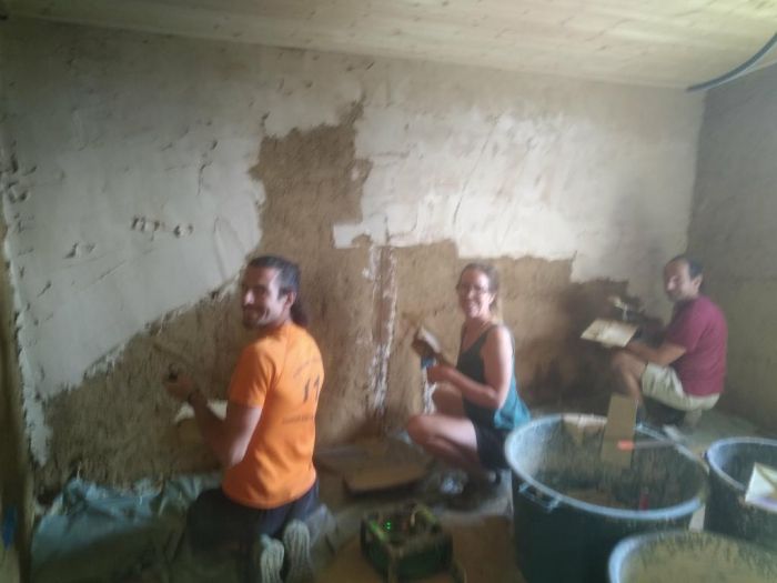Pour la deuxième année de chantier, on programme seulement trois semaines de chantier collectif pour réaliser les enduits de finition des murs et cloisons de la maison.