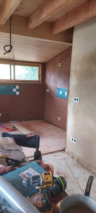 On utilisera des recettes artisanales (déjà testées avant) pour réaliser nous mêmes les enduits avec des produits du coin (sable des carrières locales). La recette : sable + argile.