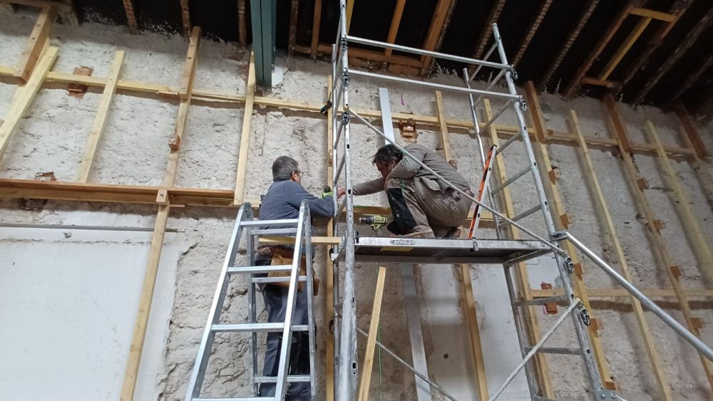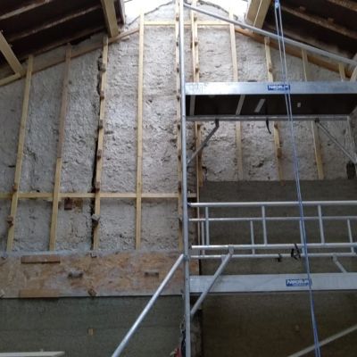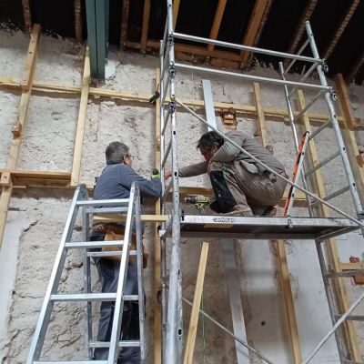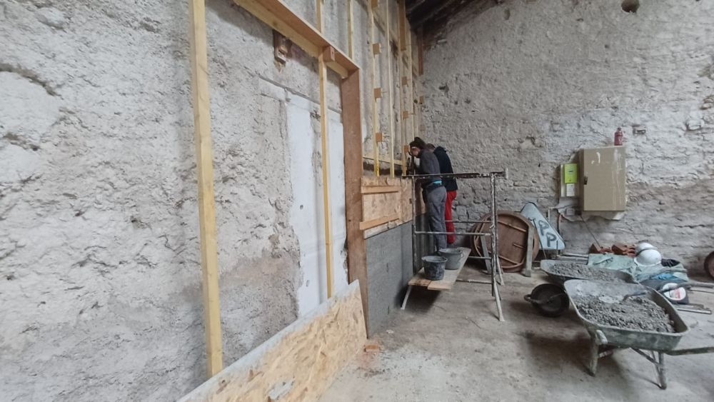 Dans une ancienne bâtisse en cours de rénovation pour une transformation en tiers lieu, nous proposons des chantiers pour réaliser une isolation avec du chaux chanvre.