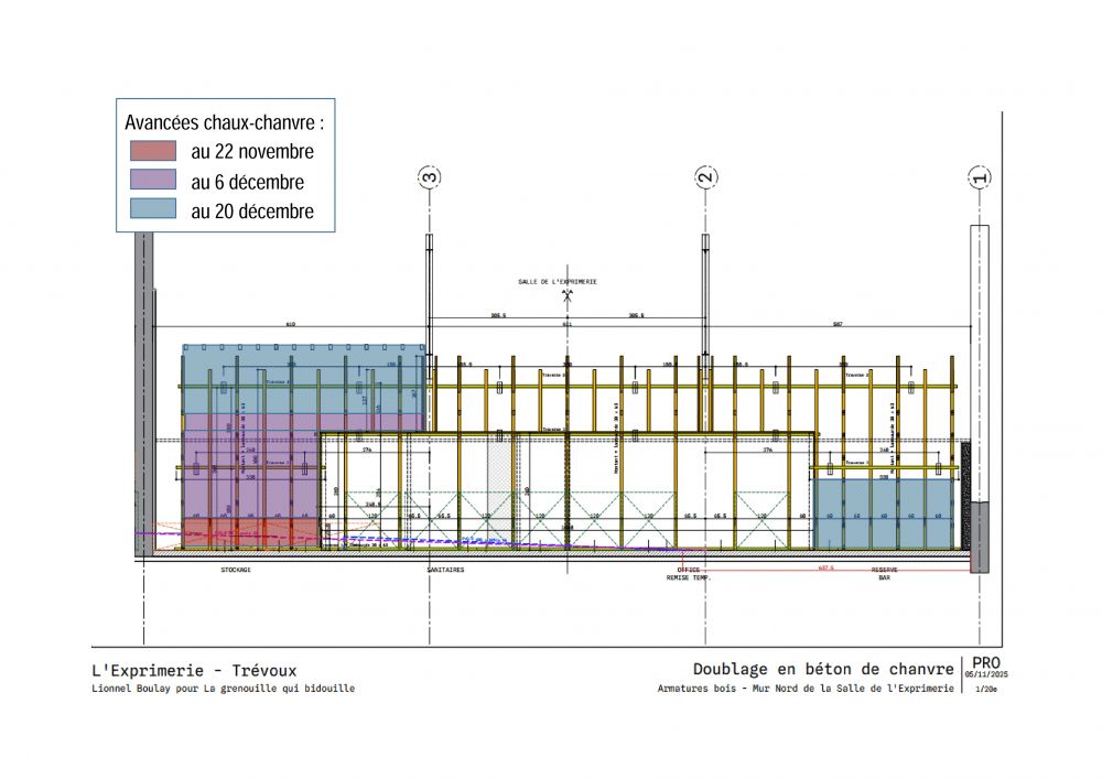- Continuer à monter l’armature en bois qui contiendra également l’électricité et les voies d’extraction d’air.
