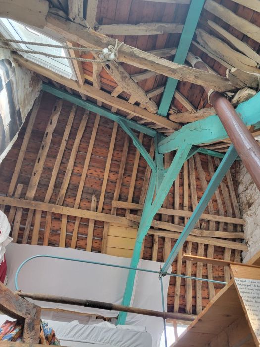 En plus de la boutique, la maison dispose de 2 étages où nous sommes installés mais l’hiver approche et la nécessité d’isoler le toit se fait sentir… A noter que la charpente du toit a été vérifiée récemment.