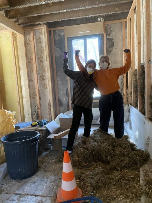 je vous propose de me rejoindre pour isoler par l'intérieur les murs d'une ancienne villa avec du chanvre en vrac éco-sourcé et local par remplissage de caissons fabriqués avec une structure en douglas + membrane Pro-climat