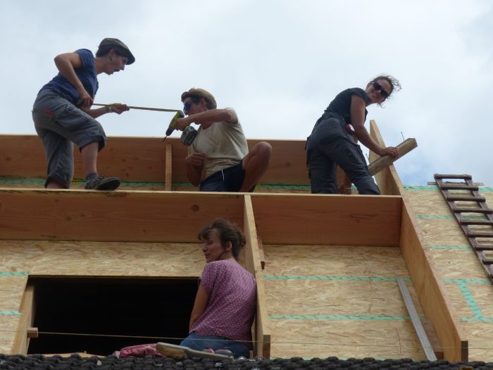 Benoit est charpentier couvreur et se fera un plaisir de répondre à vos questions, et j'ai moi même fait la formation d'ouvrier spécialisé en écoconstruction à Riaillé (44), ce qui fait qu'on pourra aussi parler de vos projets et vous aider à trouver des solutions à base de matériaux locaux et naturels, paske c'est quand même ça qui est chouette, de se dire que l'hiver prochain on aura chaud grâce au champs de blé poussé a quelques kilomètres d'ici!