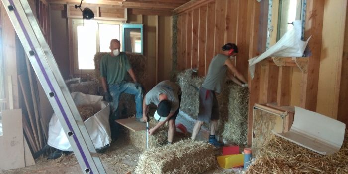 Durant ce chantier, vous pourrez vous former sur l'isolation paille et apprendre les techniques de mises en œuvre de ce matériau.