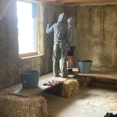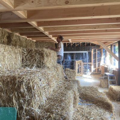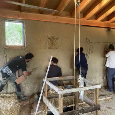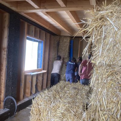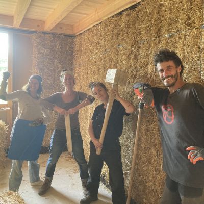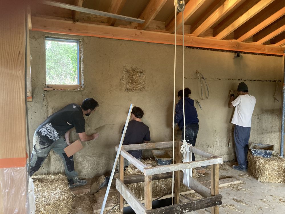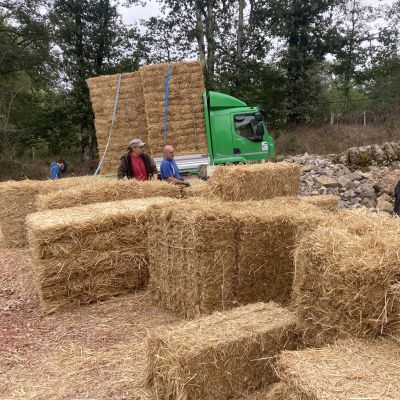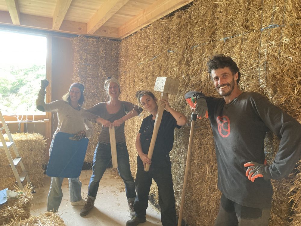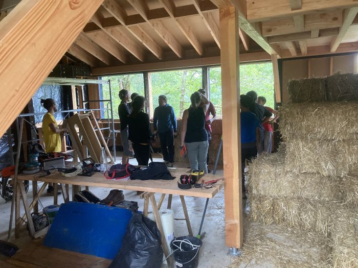 Notre maison ossature bois (hors d’eau depuis début août) sera isolée en bottes de paille et enduit à l’argile. Elle fait 90m2 pour accueillir notre famille de 4 personnes. Elle se situe le long du chemin de st Jacques de Compostelle dans le Lot. Les repas du midis seront fournis. Possibilité d’hébergement sur le terrain ou chez l’habitant.