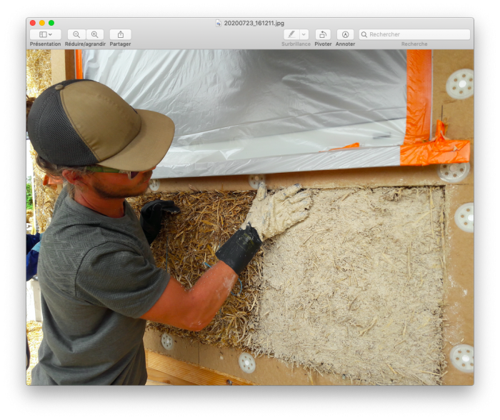 L’organisation par Pascal (pro qui nous accompagne) des différents postes permettra dès la première semaine à chaque participant de s’initier à l’isolation paille et à la pose des enduits.