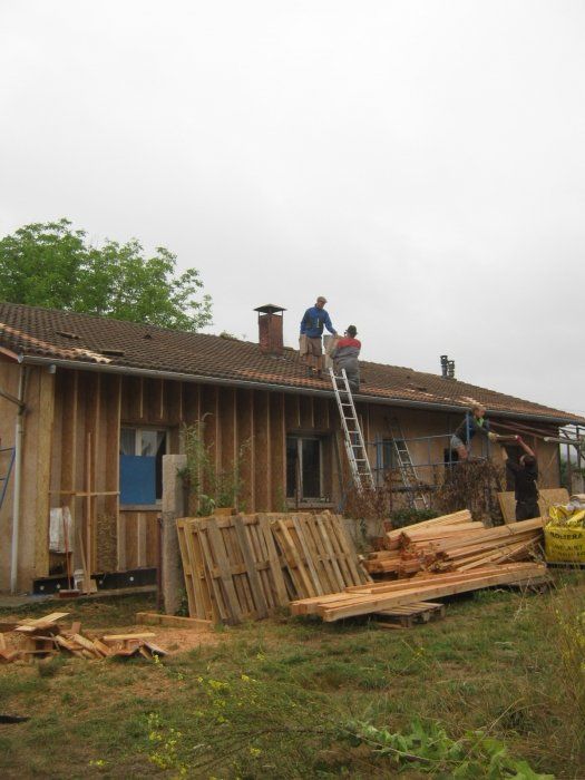 en parallèle, prolonger le débord de toît et assurer la couverture en tuile,