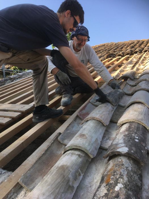 • Rénovation partielle de toiture en tuiles canal (sous réserve), et remplacement de poutres.